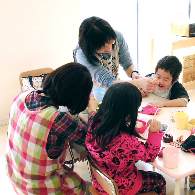 児童発達支援事業と放課後等デイサービス事業、日中一時支援事業を行っています。主に未就学児と小学生を対象に、日常生活の自立訓練を行ったり、のびのびと楽しく遊ぶ中で、子どもたちの成長のお手伝いをしています。