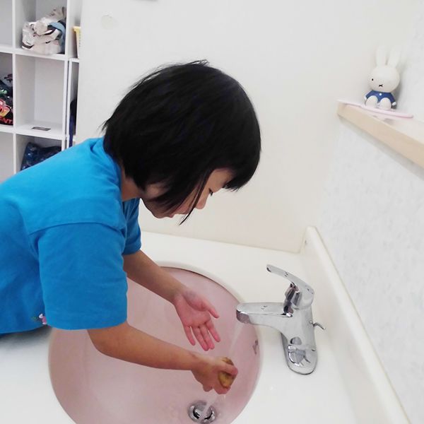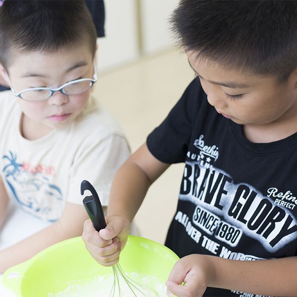 手洗いうがいをしたらおやつの時間です。長期休みなどみんなおやつ作りをすることもあります。
