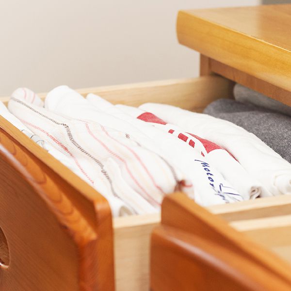 制服で登園したお子さんは、まず私服に着替えます。衣服の着脱もなるべく自分で行い、脱いだ制服も綺麗にたたむ練習をします。